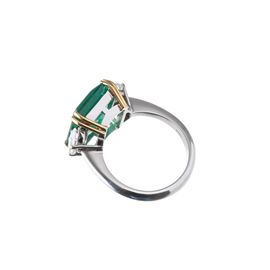 ANELLO IN ORO BIANCO E GIALLO 18 KT CON DIAMANTI E CON SMERALDO TAGLIO SMERALDO