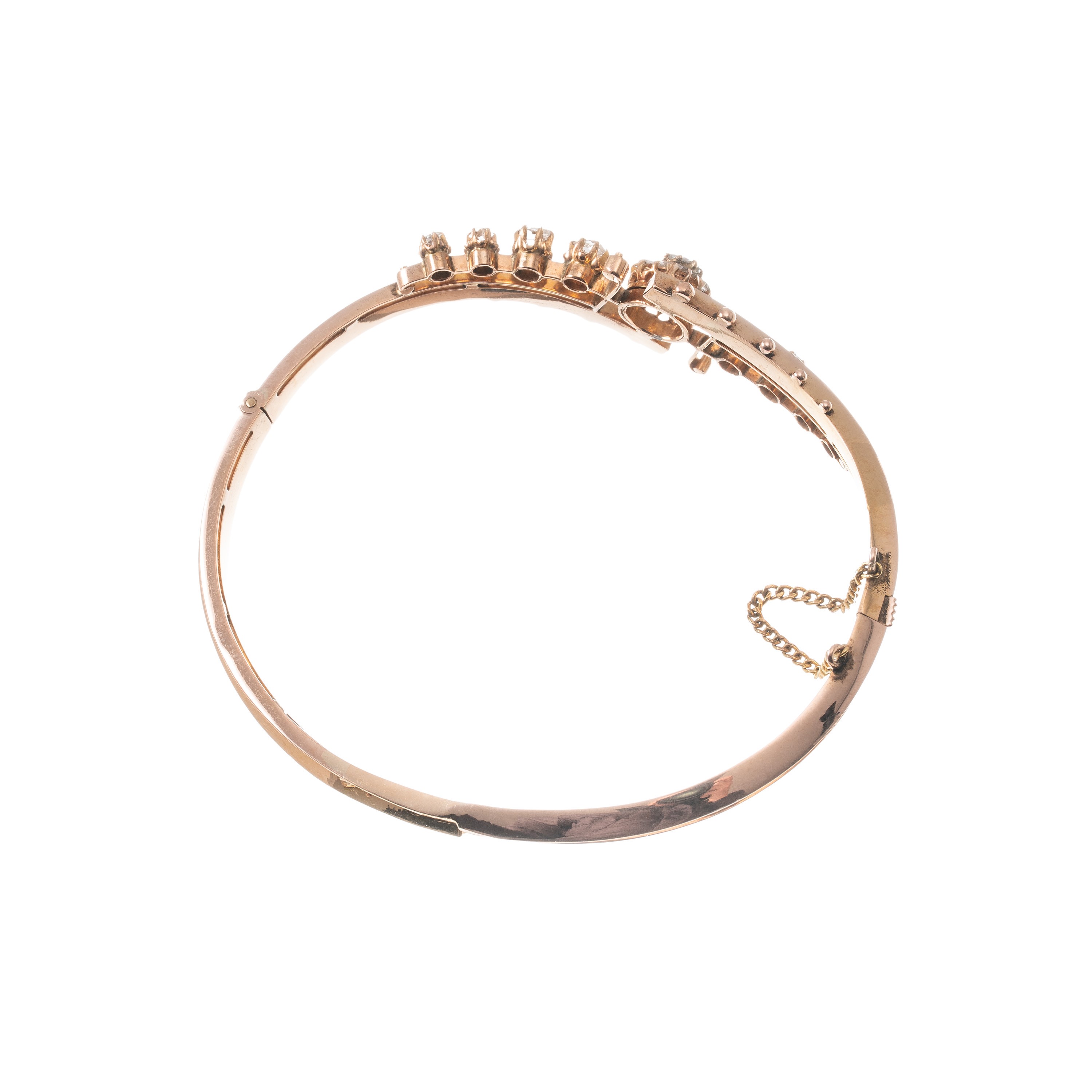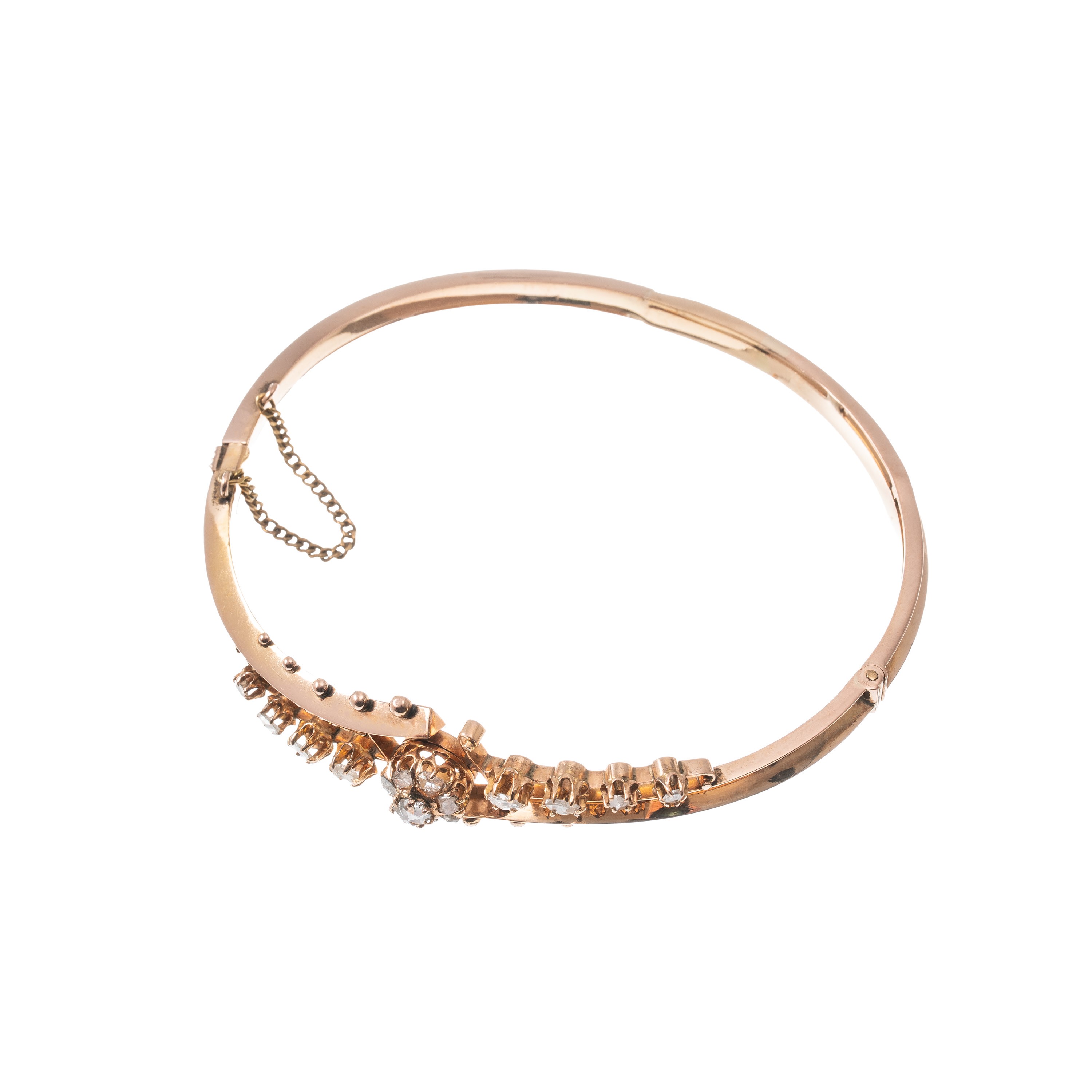 Bracciale in oro rosa 18 kt con sedici rosette di diamante.