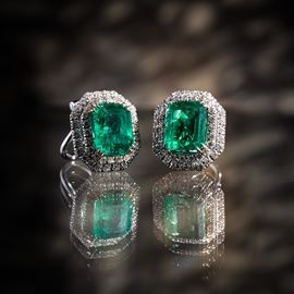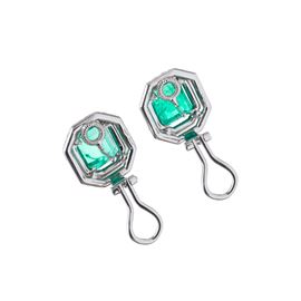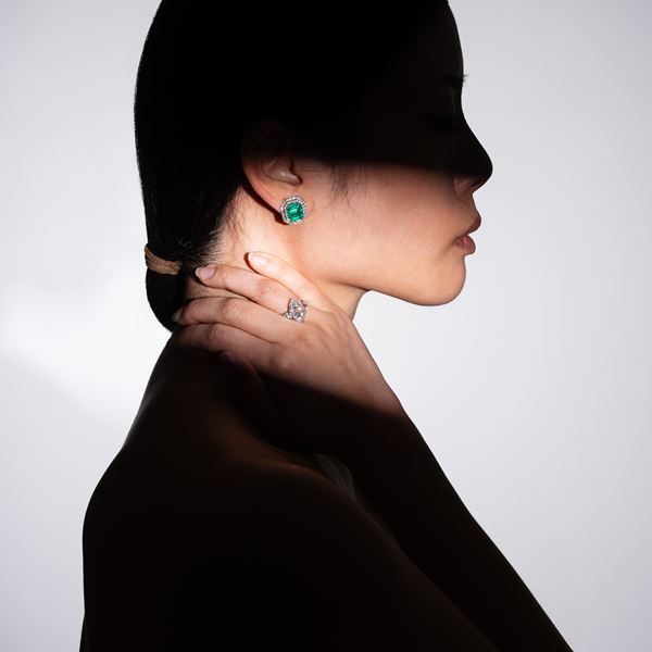 COPPIA DI ORECCHINI IN ORO BIANCO 18 KT CON DIAMANTI E SMERALDI