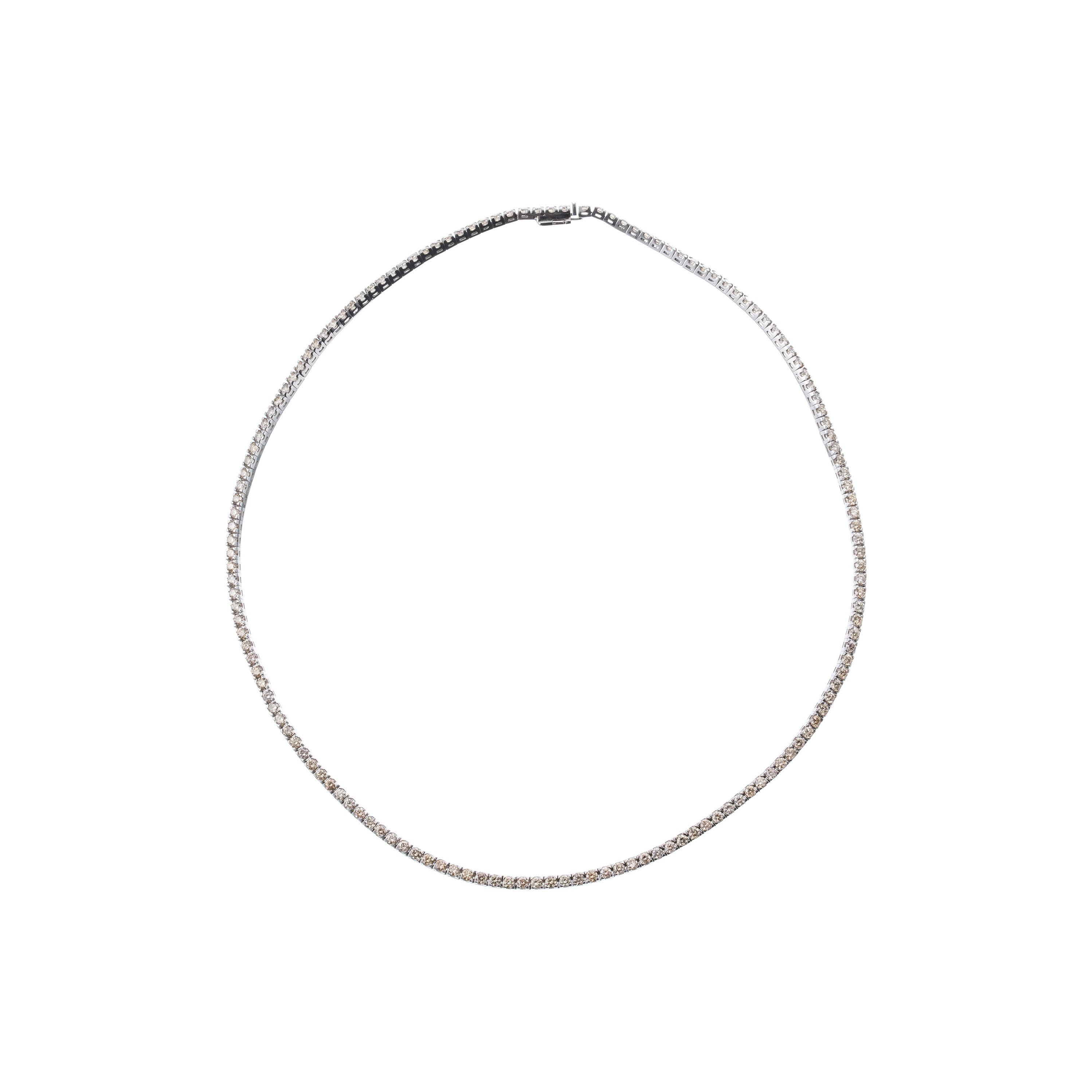 Girocollo in oro bianco 18 kt tennis con 148 diamanti brown taglio brillante per ct.5.90 c.a.