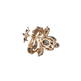PAROURE, SPILLA E ANELLO IN ORO GIALLO 18 KT CON CONTORNO DI DIAMANTI