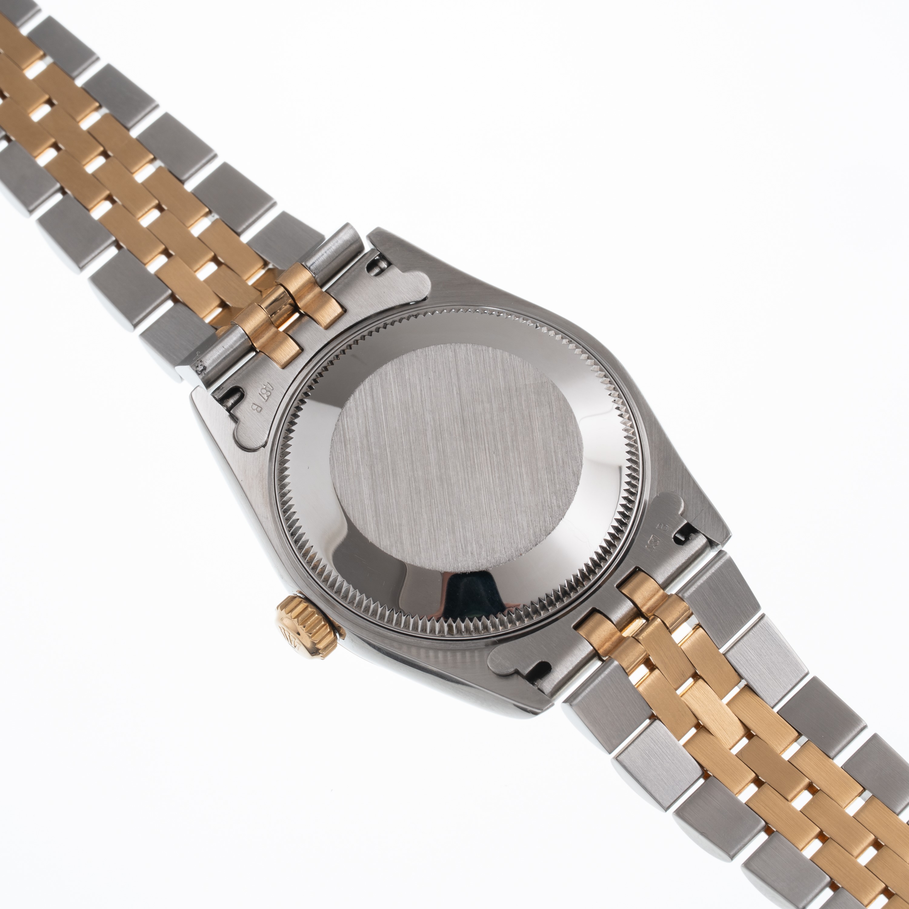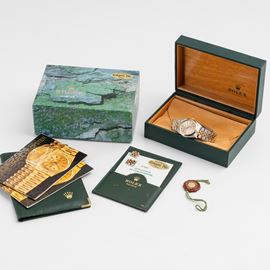 Note: Orologio solo tempo a carica automatica in acciaio con ghiera liscia in oro giallo 18 kt. Quadrante argenté, inici e sfere a bastone dorati. Bracciale jubilee in acciaio e oro giallo 18 kt. Vetro minerale piatto. Fondello a vite in acciaio. Peso testa orologio: 32,4 g. Peso totale: 68 g ca.