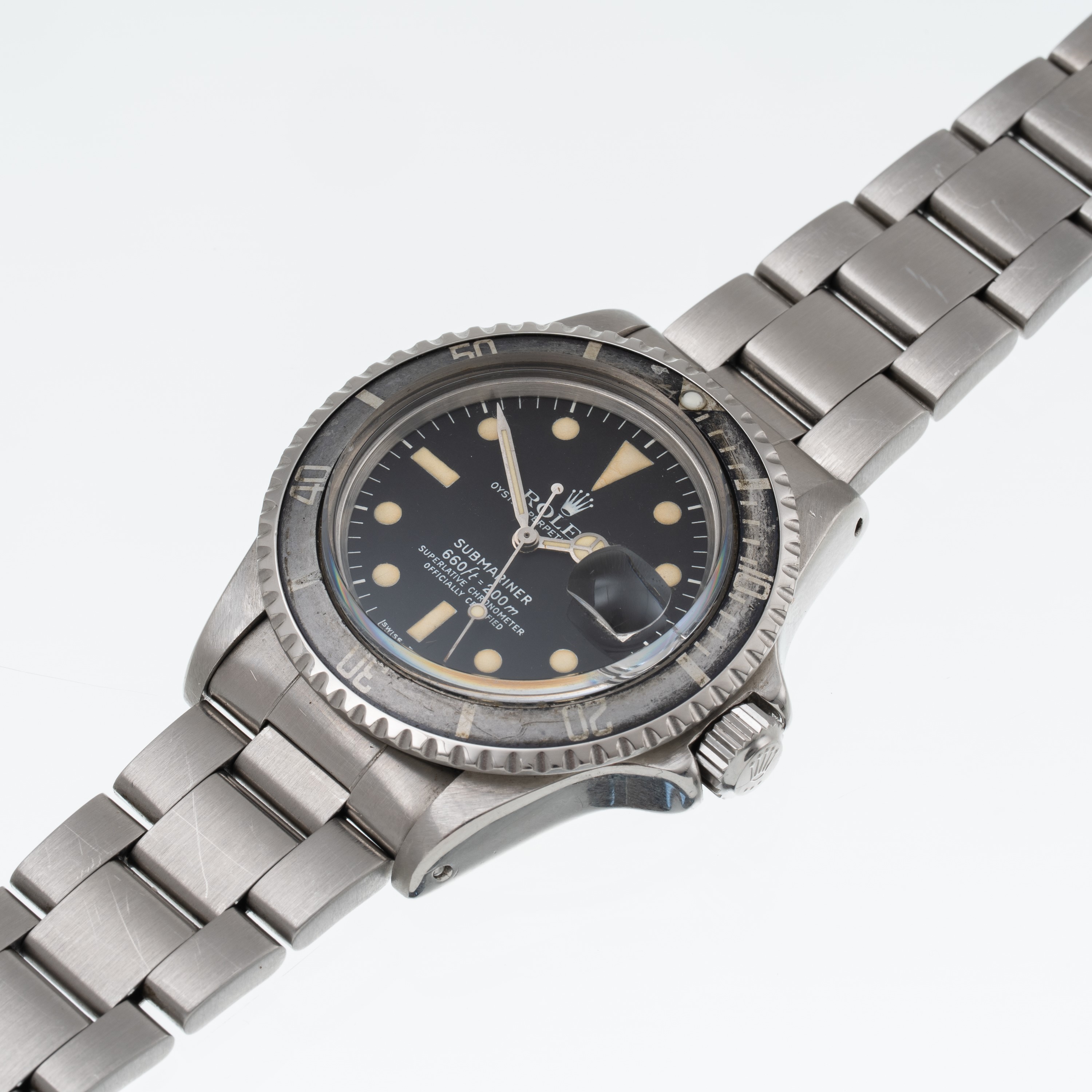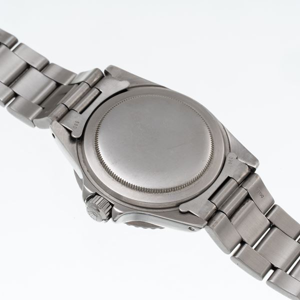 Note: Orologio solo tempo a carica automatica in acciaio con bracciale 'Oyster' con prolunga in acciaio. Ghiera bidirezionale, quadrante nero con indici luminescenti, sfere mercedes con materiale luminescente. Vetro plexiglass bombato. Fondello a vite in acciaio.
