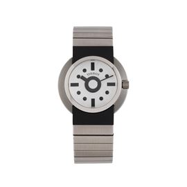 Note: Orologio solo tempo al quarzo realizzato in collaborazione con Ettore Sottsass. Quadrante bianco, indici neri, sfere a bastone nere. Bracciale in acciaio Tissot. Vetro minerale bombato. Fondello a pressione in acciaio. Edizione limitata di 250 pezzi.