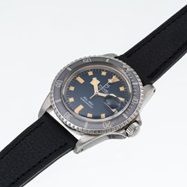 Note: Orologio solo tempo a carica automatica. Quadrante blu, indici con materiale luminescente, sfere 'snowflake' con materiale luminescente. Ghiera bidirezionale. Datario ad ore tre 'roulette'. Cinturino in pelle. Vetro plexiglass bombato. Fondello a vite in acciaio.