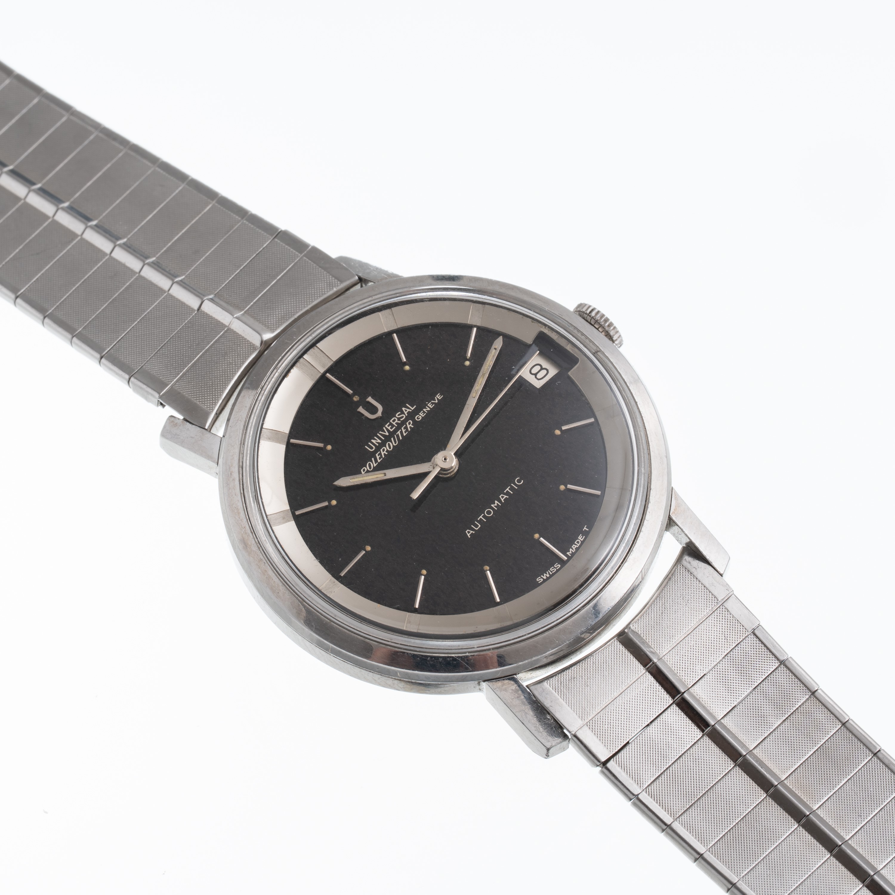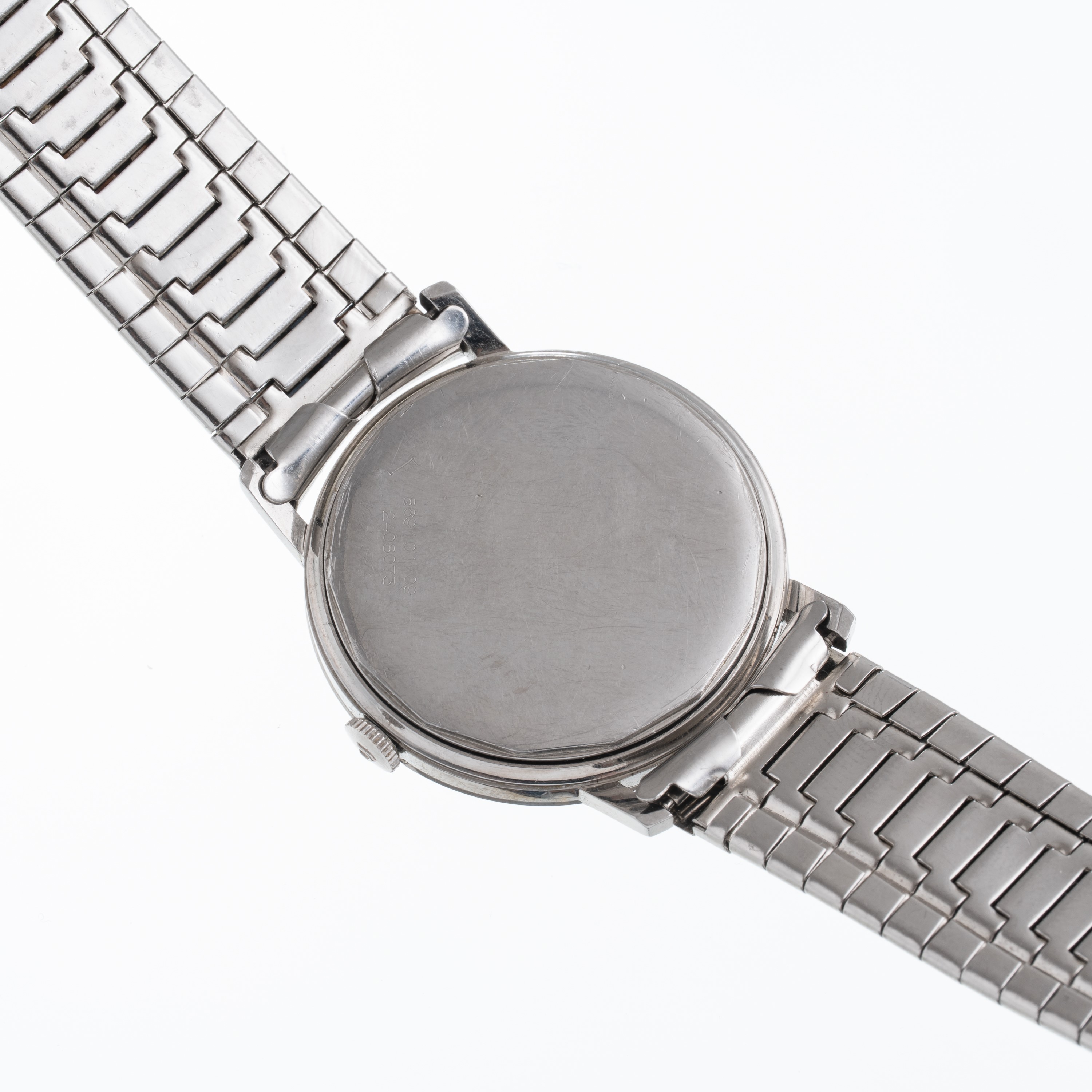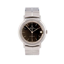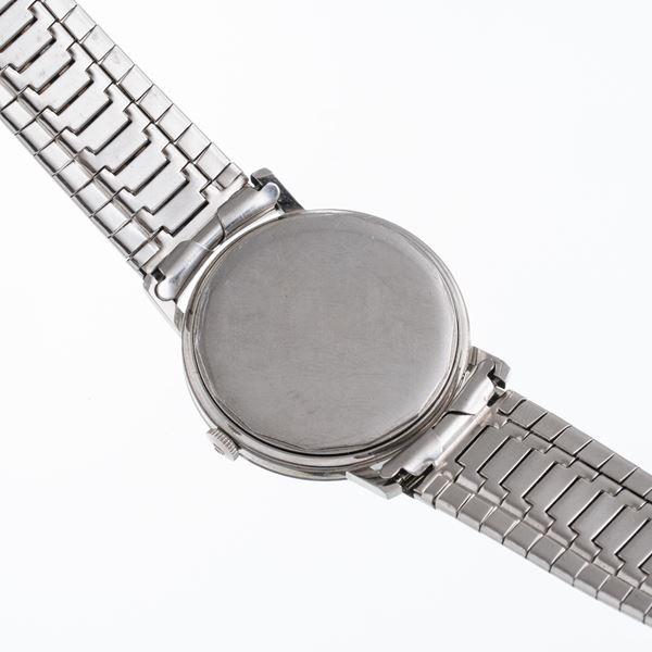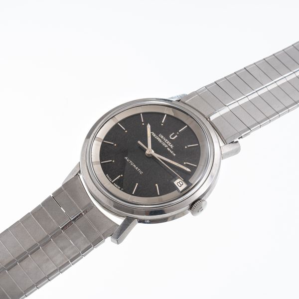 Note: Orologio solo tempo a carica automatica. Quadrante tropicale, datario ad ore tre. Indici e sfere a bastone con materiale luminescente. Bracciale in acciaio May Flower. Vetro plexiglass bombato. Fondello a vite in acciaio.