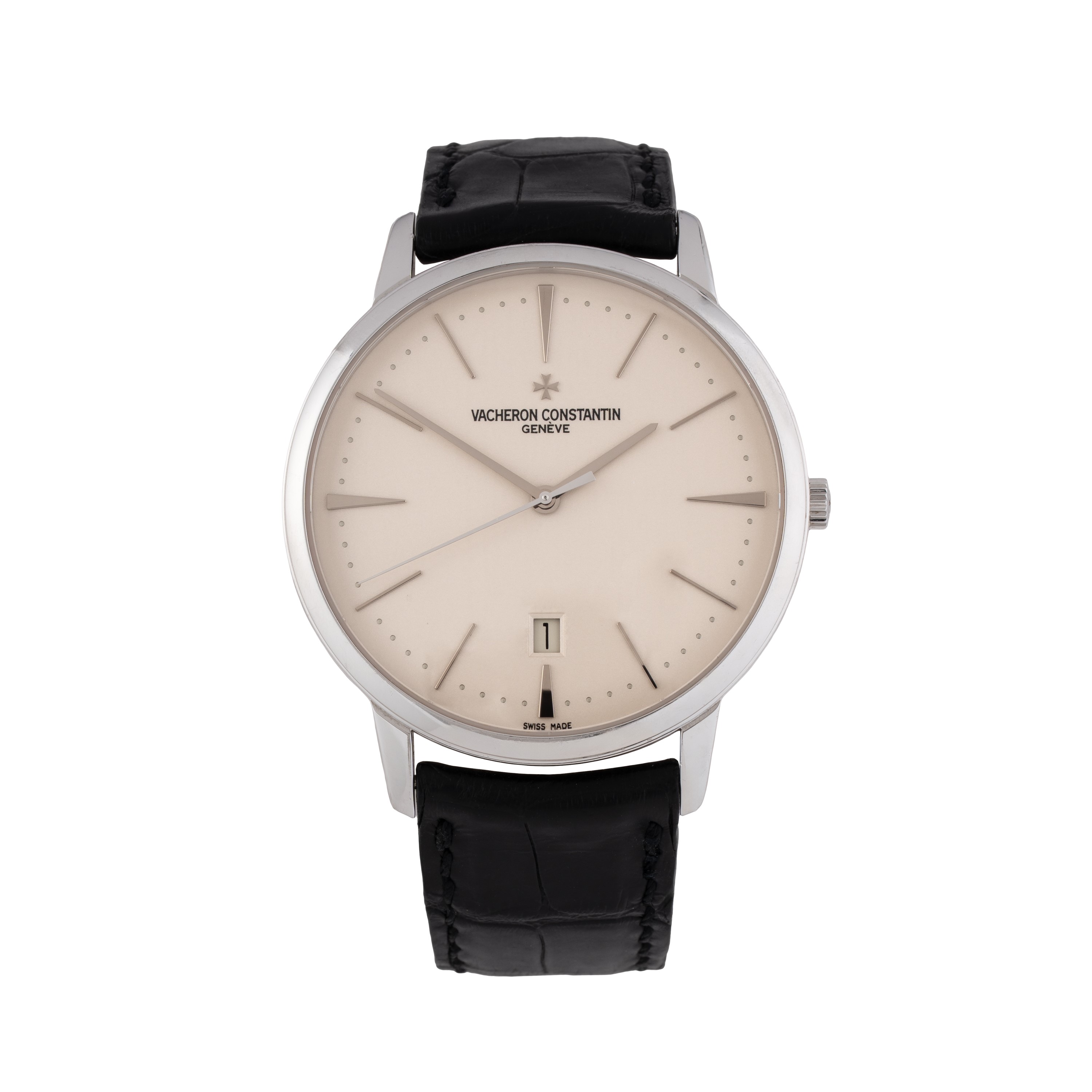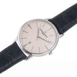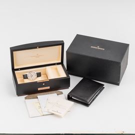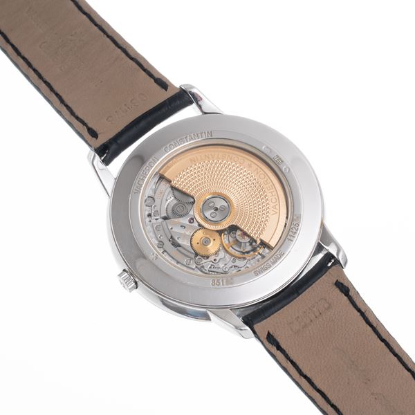 Note: Orologio solo tempo a carica automatica in oro bianco 18 kt. Quadrante bianco, indici e sfere a bastone argentate. Cinturino in pelle Vacheron Contantin. Fibbia in oro bianco 18 kt Vacheron Constantin. Vetro minerale bombato. Fondello a pressione in oro bianco 18 kt a vista. Peso testa orologio: 55,8 g. Peso totale: 66,7 g.