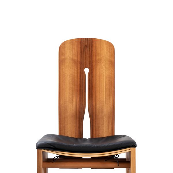 Struttura in legno e legno multistrato, rivestimenti della seduta in pelle.
