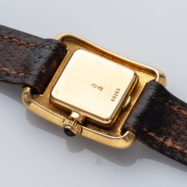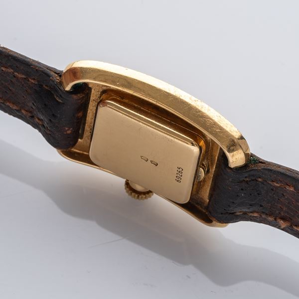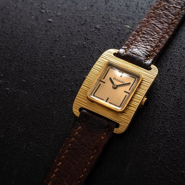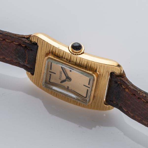 Note: Orologio in oro 18kt con cassa a corteccia, quadrante a settori in oro e sfere a bastone. Corona con zaffiro cabochon. Fondello a pressione. Vetro minerale curvo.