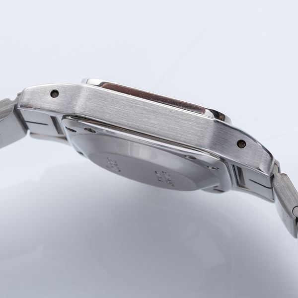Note: Quadrante bianco, numeri romani neri. Sfere blu. Cassa in acciaio satinato, ghiera lucida. Vetro minerale piatto.