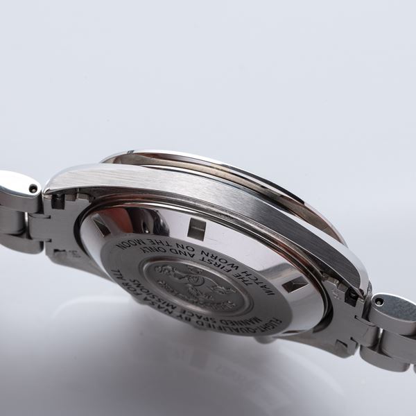 Note: Quadrante nero con logo commemorativo ad ore dodici. Sfere a bastone bianche luminescenti. Bracciale in acciaio. Cassa in acciaio con fondello a vite. Ghiera in alluminio nero. Vetro plexi bombato.