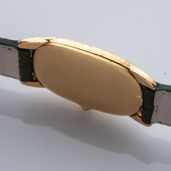 OROLOGIO SOLO TEMPO A CARICA MANUALE CON CASSA LAVORATA IN ORO GIALLO 18KT E QUADRANTE GIALLO.