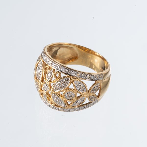 Note: Anello in oro giallo 18kt traforato con brillantini circa 0.30ct