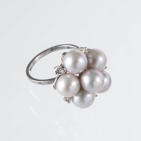 ANELLO IN ORO BIANCO 14KT CON PERLE E DIAMANTI