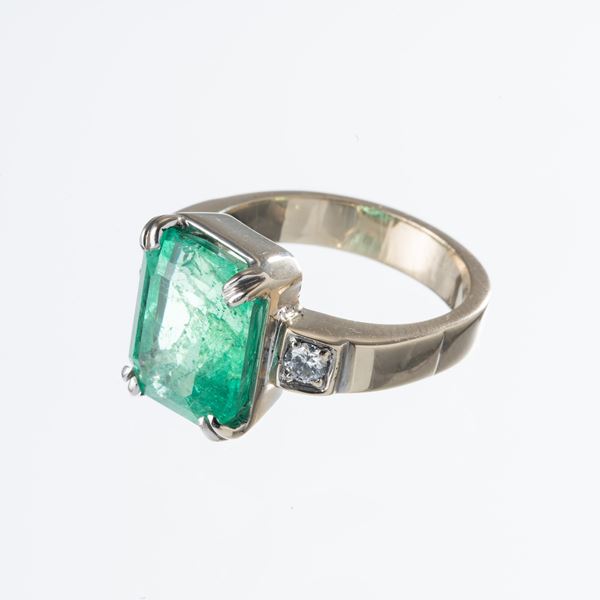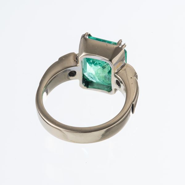 ANELLO IN ORO BIANCO 18KT CON SMERALDO CT 4 E DUE BRILLANTI