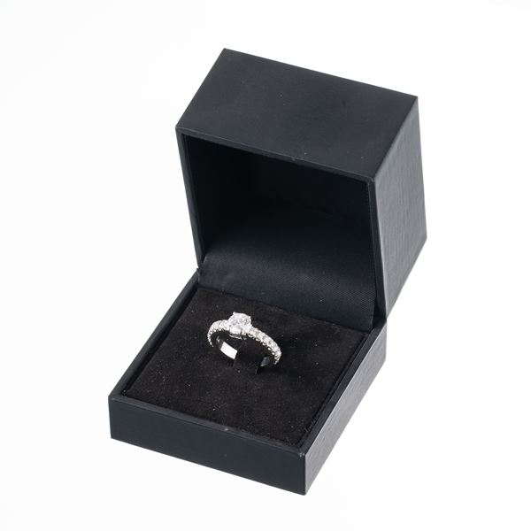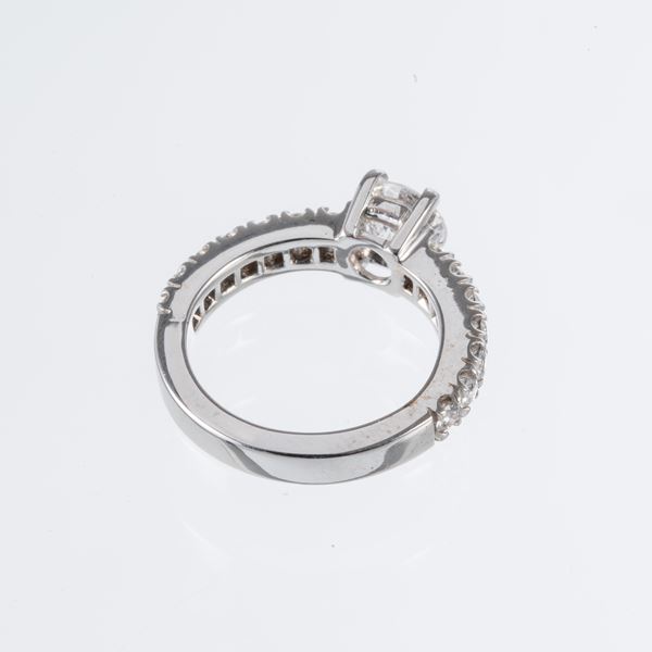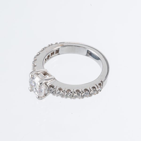 Note: Anello in oro bianco 18kt con diamante centrale 1.30ct, diamanti laterali 1.50ct