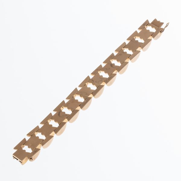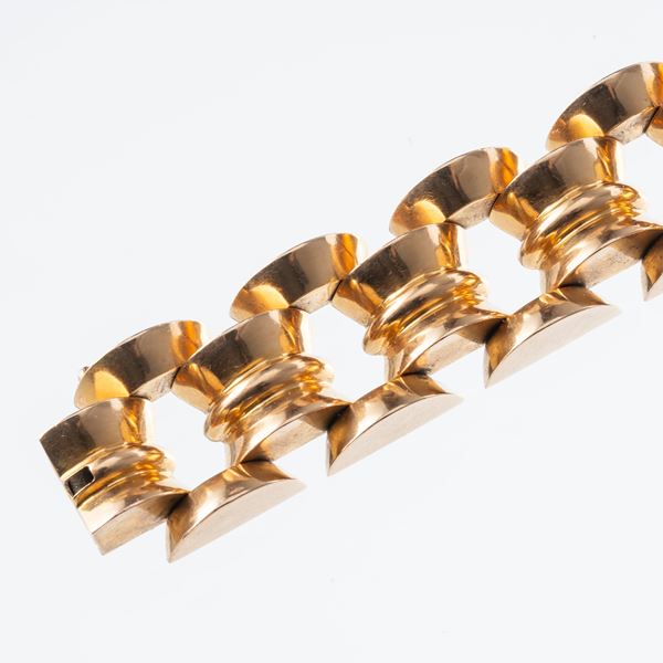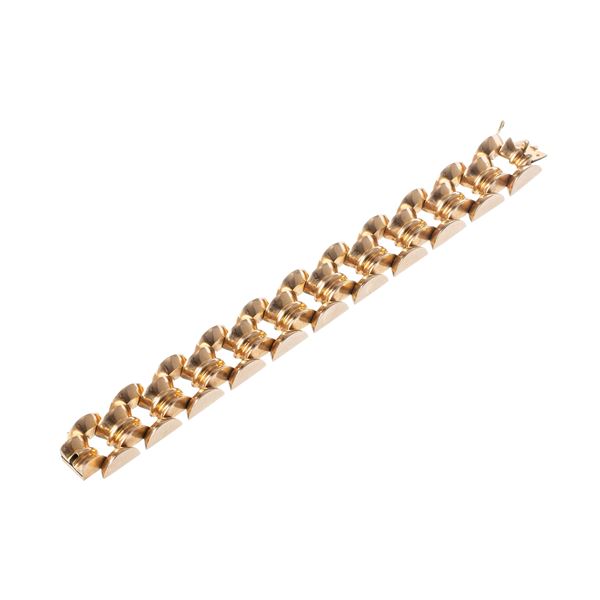 BRACCIALE TANK STAMPATO IN ORO GIALLO 18 KT CON MOTIVI GEOMETRICI CIRCOLARI