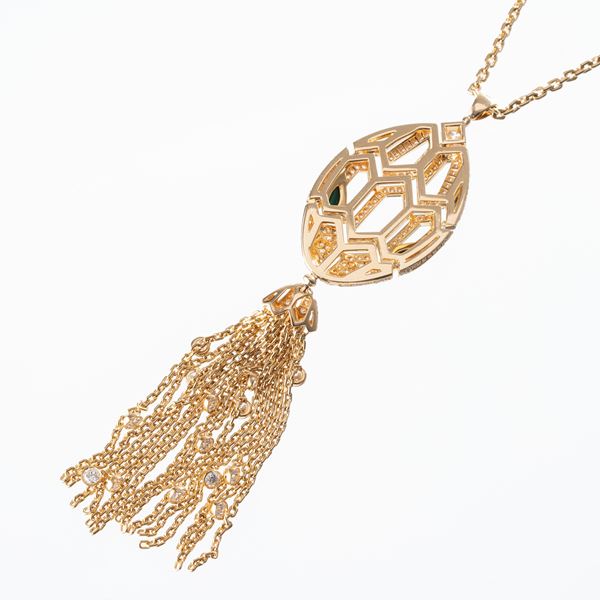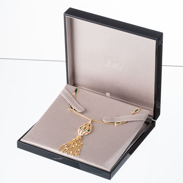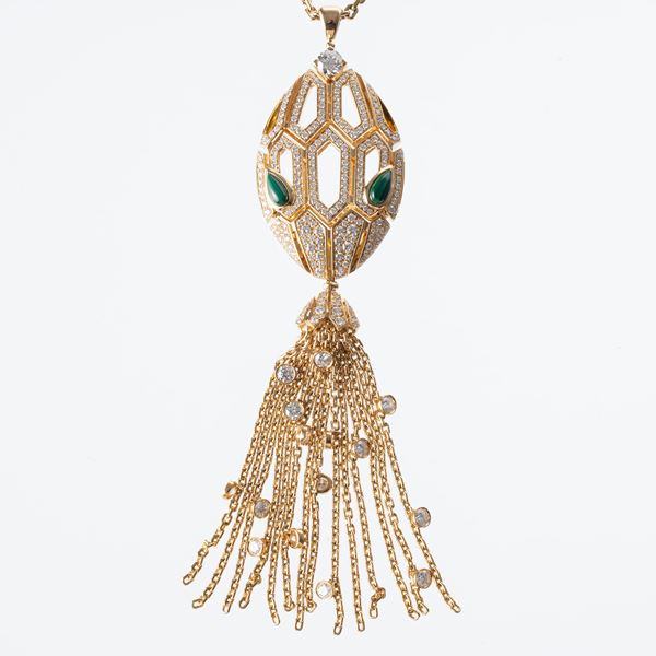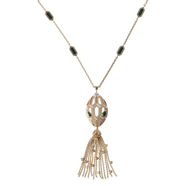 COLLANA SERPENTI SEDUTTORI IN ORO GIALLO 18KT,DIAMANTI E MALACHITE