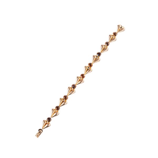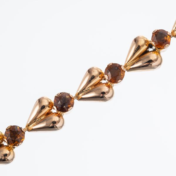 COLLANA E BRACCIALE STAMPATI VUOTI IN ORO 18 KT COLLEGABILI, CON QUARZI CITRINI