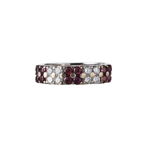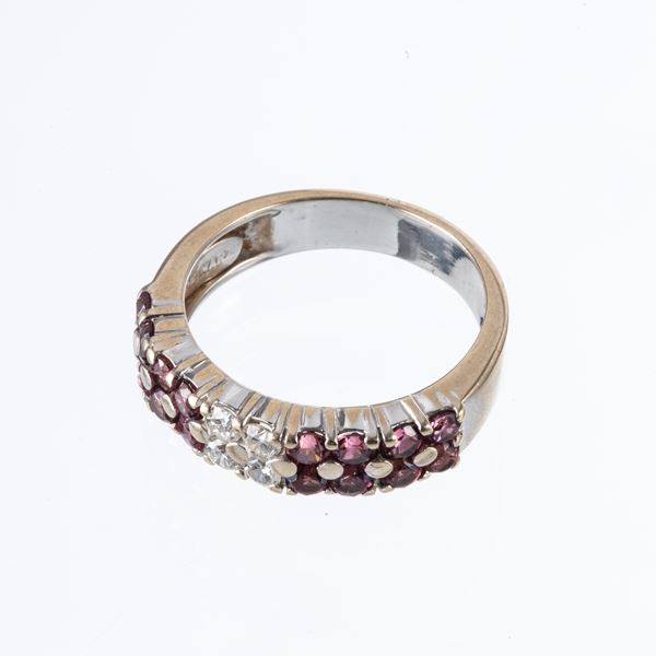 Note: Coppia di anelli in oro bianco 18kt con brillanti circa 0.80ct e tormaline rosa