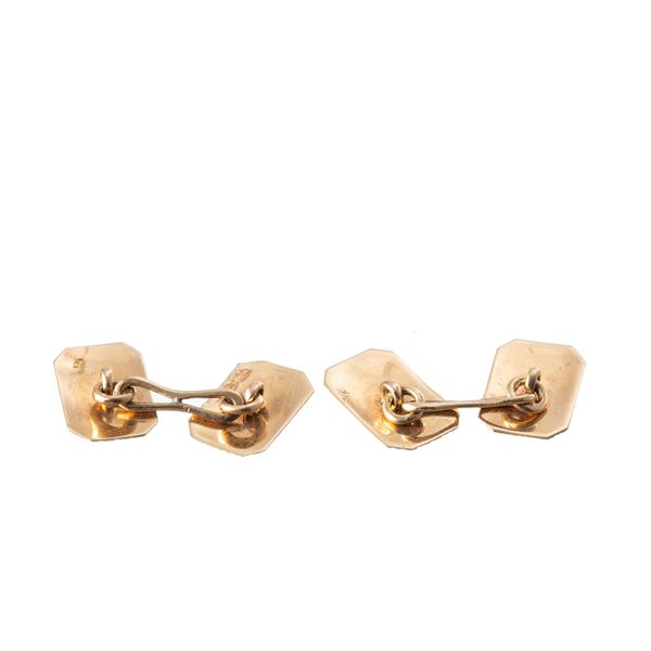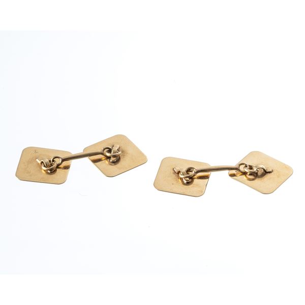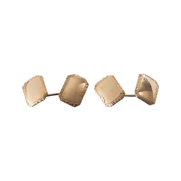 Note: Coppia di gemelli in oro giallo 18kt incisi a mano di forma rettangolari e quadrati, di metΓ  '900.