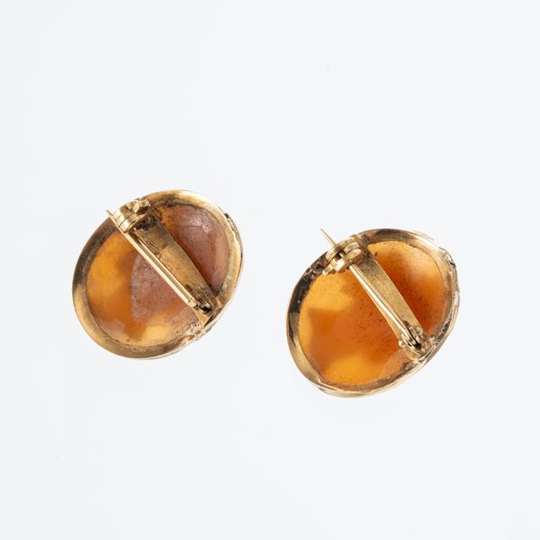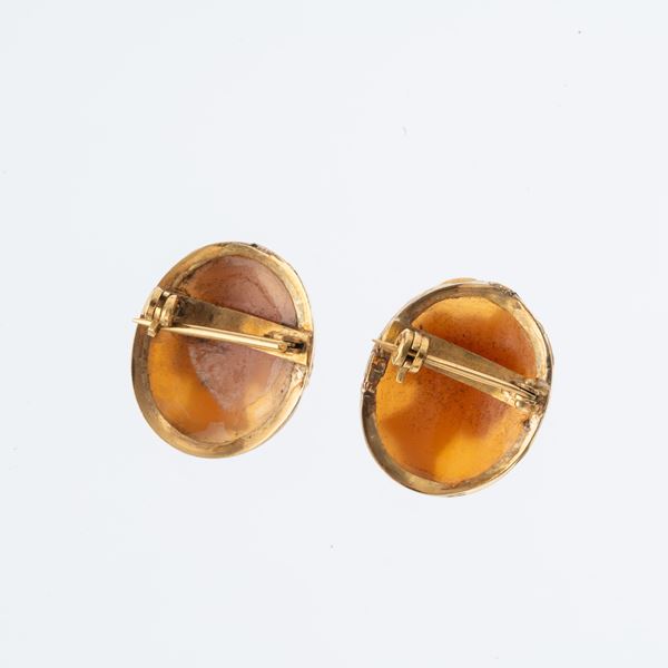 Note: Coppia di spille con cammei montate in oro giallo 18kt