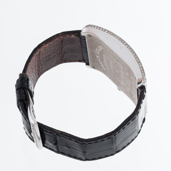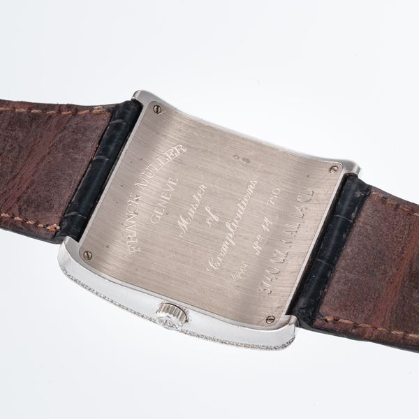 Note: Orologio in serie limitata, 44 pezzi. Cassa in oro bianco e diamanti. Quadrante in diamanti con indici romani ad ore tre, sei, nove, dodici. Sfere breguet. Vetro minerale curvo. Cinturino e finnia in oro bianco 18kt con diamanti Frank Muller.