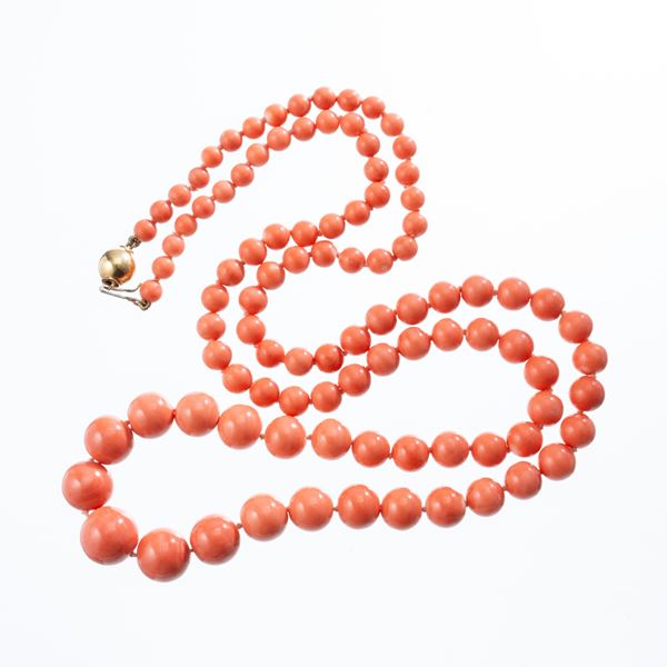 GIROCOLLO IN FILO DI CORALLO CON CHIUSURA IN ORO GIALLO 18 KT