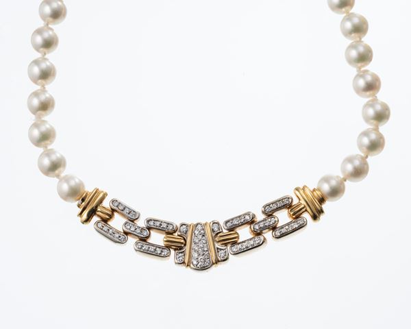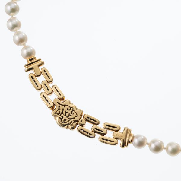 Note: Girocollo in perle coltivate 7-7.5 mm con chiusura in oro giallo 18kt con brillanti incastonati 0.35ct circa