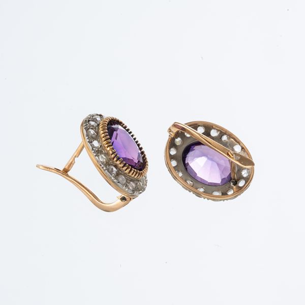 Note: Orecchini in oro giallo 18kt con pietra viola e contorno di diamanti coroné