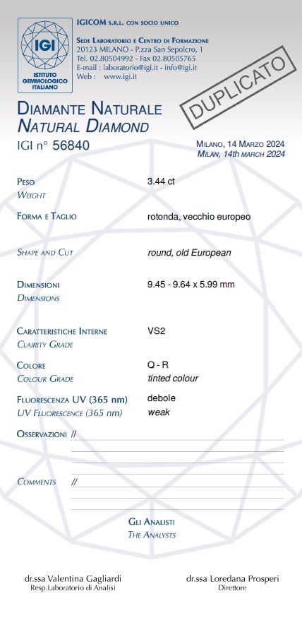 Diamanti: rispettivamente con CT.3,24 VS1 e CT.3,44 VS2.
