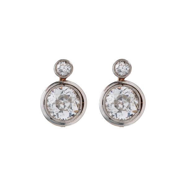 ORECCHINI IN ORO GIALLO E BIANCO 18KT CON DIAMANTI TAGLIO VECCHIO