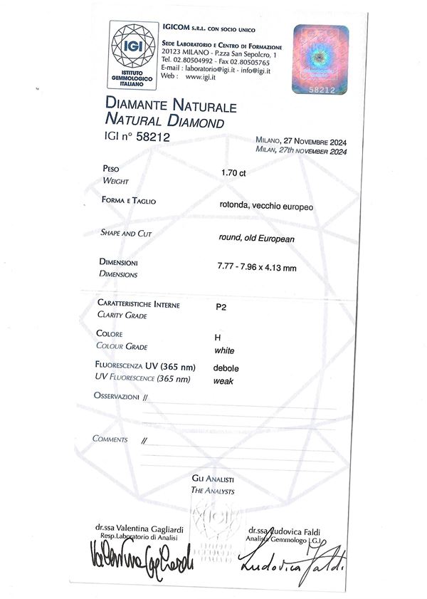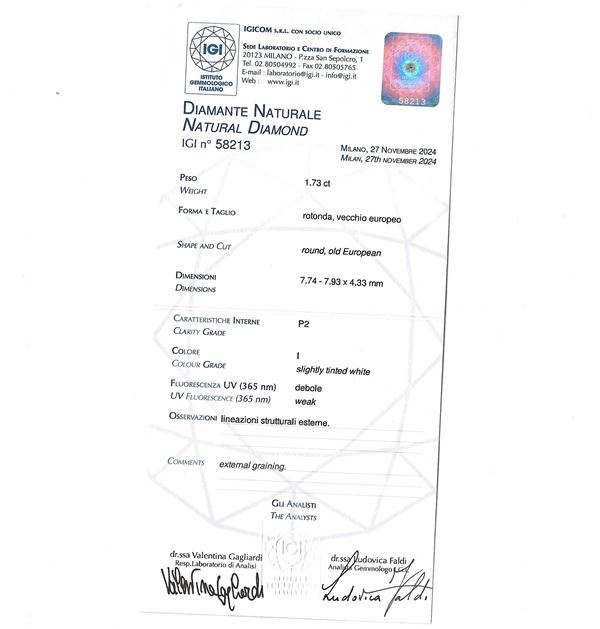 Note: Pietre certificate IGI. Nยฐ certificati 58212-58213