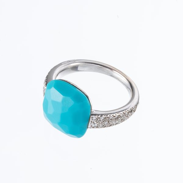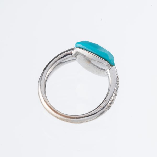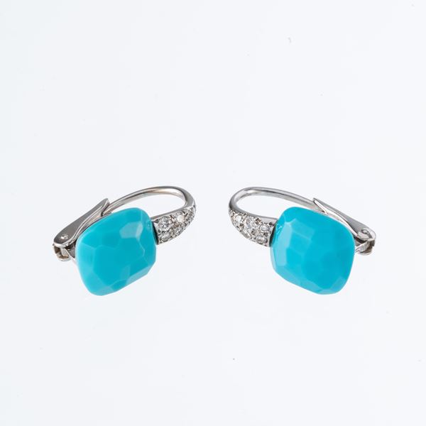 Materiale: Oro bianco 18kt, turchese e diamanti