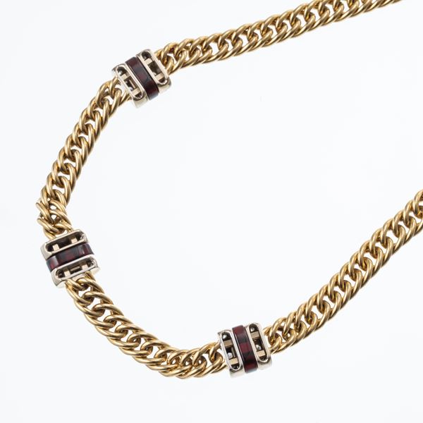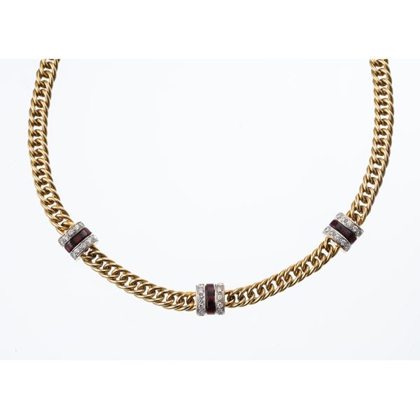 POMELLATO - COLLANA IN ORO GIALLO 18 KT CON INSERTI IN DIAMANTI E OCCHIO DI TIGRE