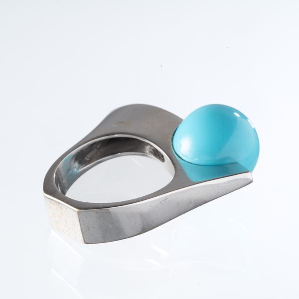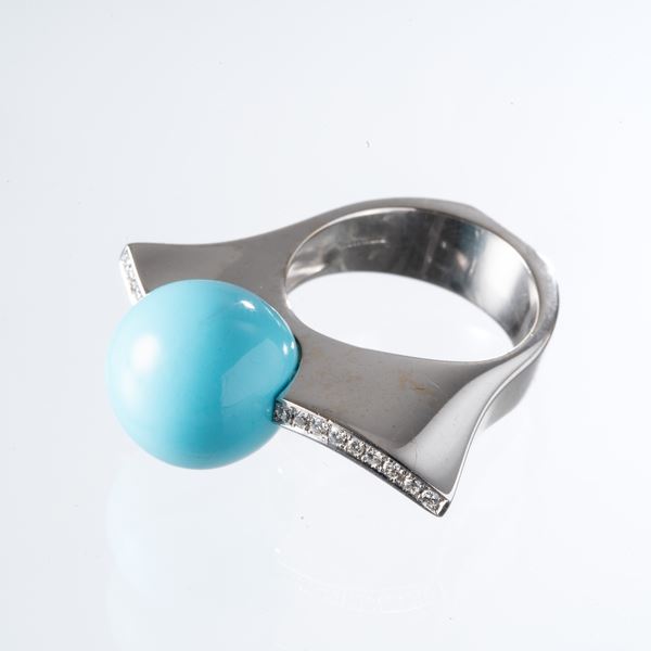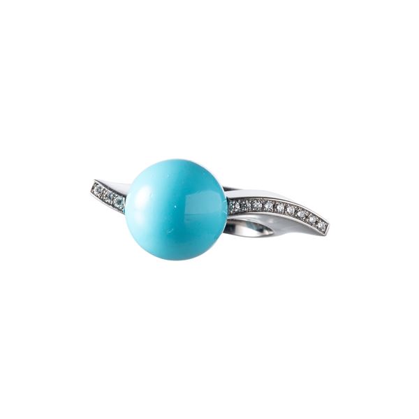 Materiale: Oro bianco 18kt, turchese, brillantini