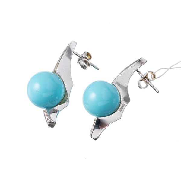 Note: Parure composta da anello in oro bianco 18kt e turchese 13.77 mm e brillantini 0.12ct ed orecchini con turchese 120mm con brillantini 0.24ct.