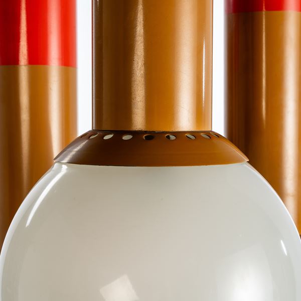 Painted aluminum, acrylic, cased glass