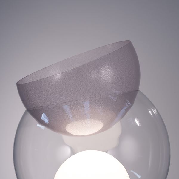Opaline and transparent glass shades, adjustable coloured glass vase, aluminium, steel