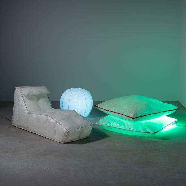MARIO BELLINI, 'MILKY WAY' CHAISE LONGUE, CUSHIONS AND LAMP