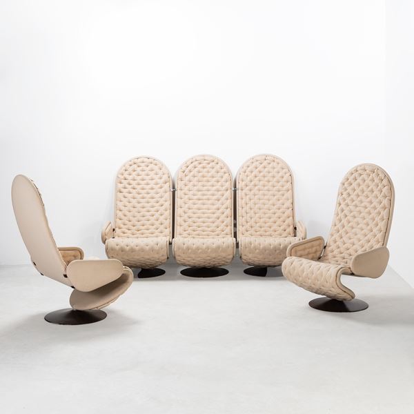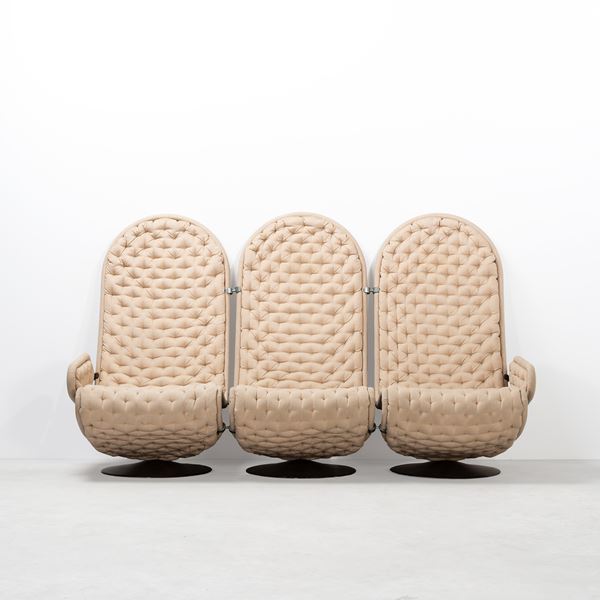 set composed of five modular seats, three sets of armrests and three connecting brackets, fitted with 'deluxe' padded upholstery