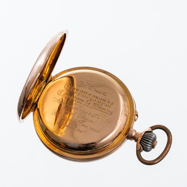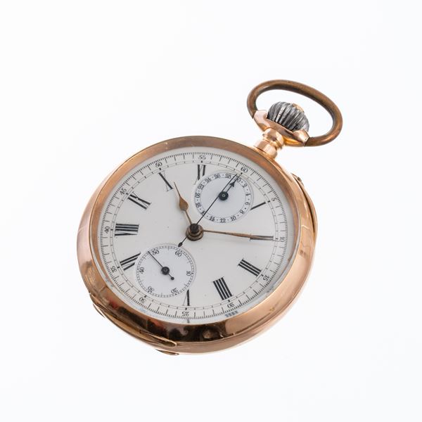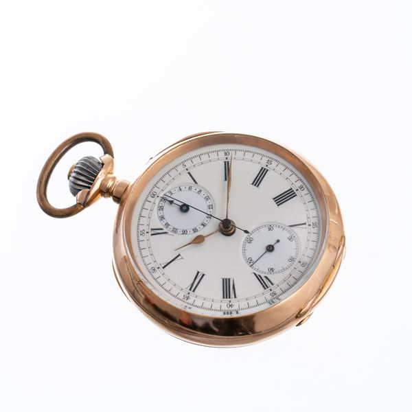 18KT ROSE GOLD MINUTE COUNTER POCKET CHRONOGRAPH WITH PORCELAIN DIAL