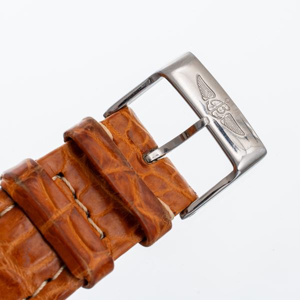 Notes: Steel automatic inding chronograph. Blue dial, luminescent Arabic numerals. Date window at three o'clock. Luminescent gladius hands. Seconds counter at nine o'clock, minutes counter at twelve o'clock, hours counter at six o'clock. Bidirectional bezel. Domed mineral glass, steel screw-down case back.