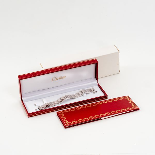Notes: 18kt white gold bracelet for Cartier Tank Francaise. Box and warranty.
