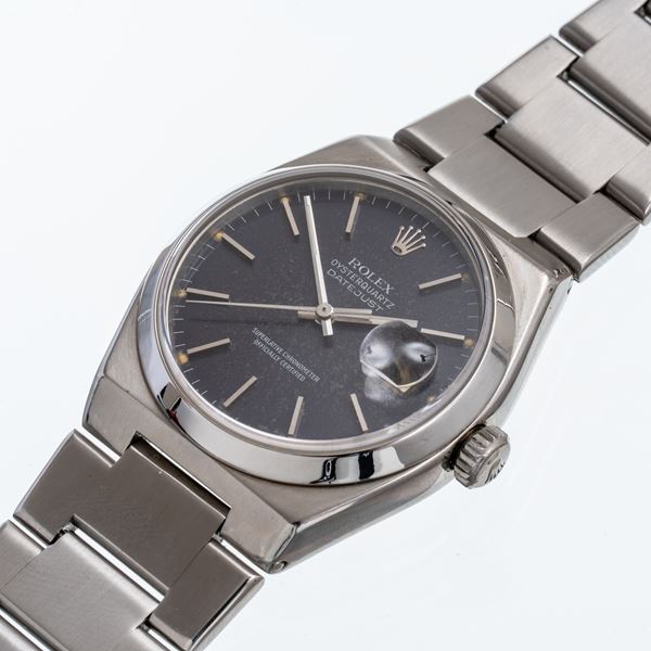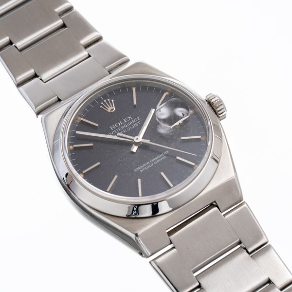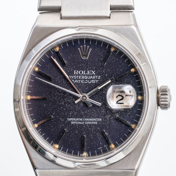 Notes: Quartz watch. Blue dial, indexes and baton spheres with luminescent material. Central seconds. Date window at three o'clock. Steel bracelet. Flat sapphire glass. Steel screw-down case back and crown.