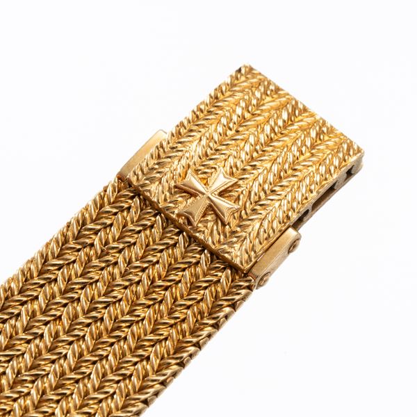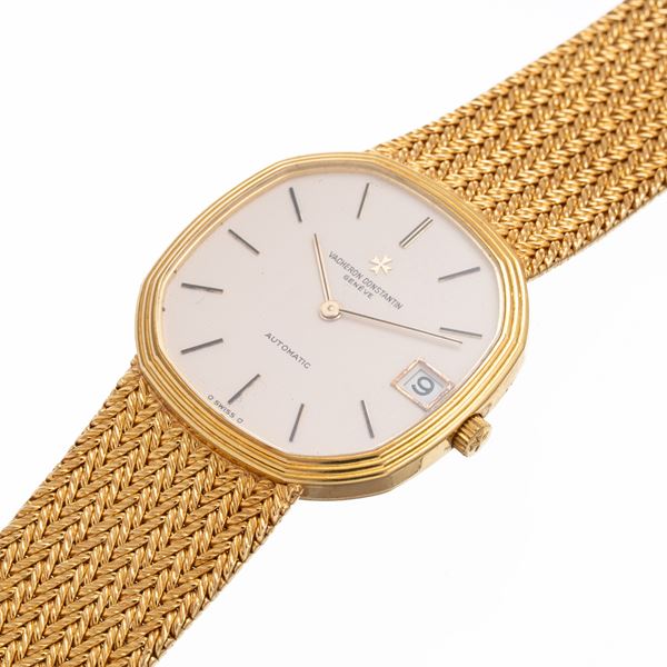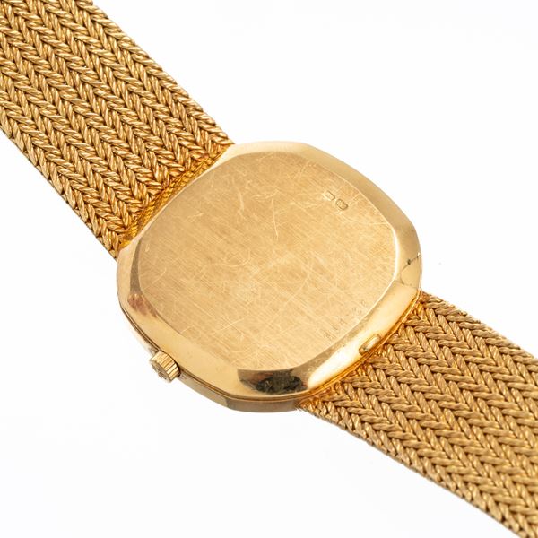 Notes: 18kt yellow gold self-winding watch with integrated bracelet, total length 20.5 cm. White 'clous de Paris' dial, baton hour markers and spheres. Date window at 3 o'clock. Flat mineral crystal, pressure case back.